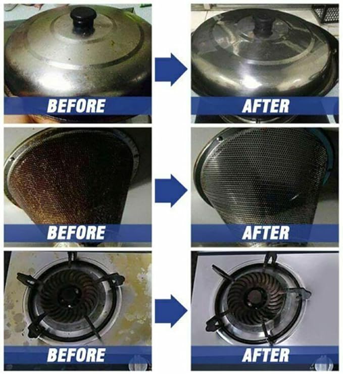 Not only for kitchen range hood heavy oil cleaning but also for stains cleaning on toilets, pot bottom, kitchen countertop, floors, wood panels, cars, and more, replacing your regular cleaning.